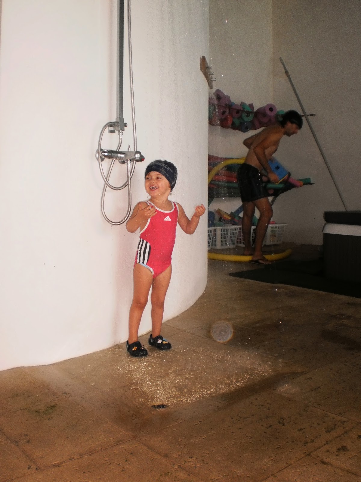 | M. nas aulas de natação, porque a melhor forma de impedir afogamento na infância é mesmo aprendendo a nadar, e ela adora |